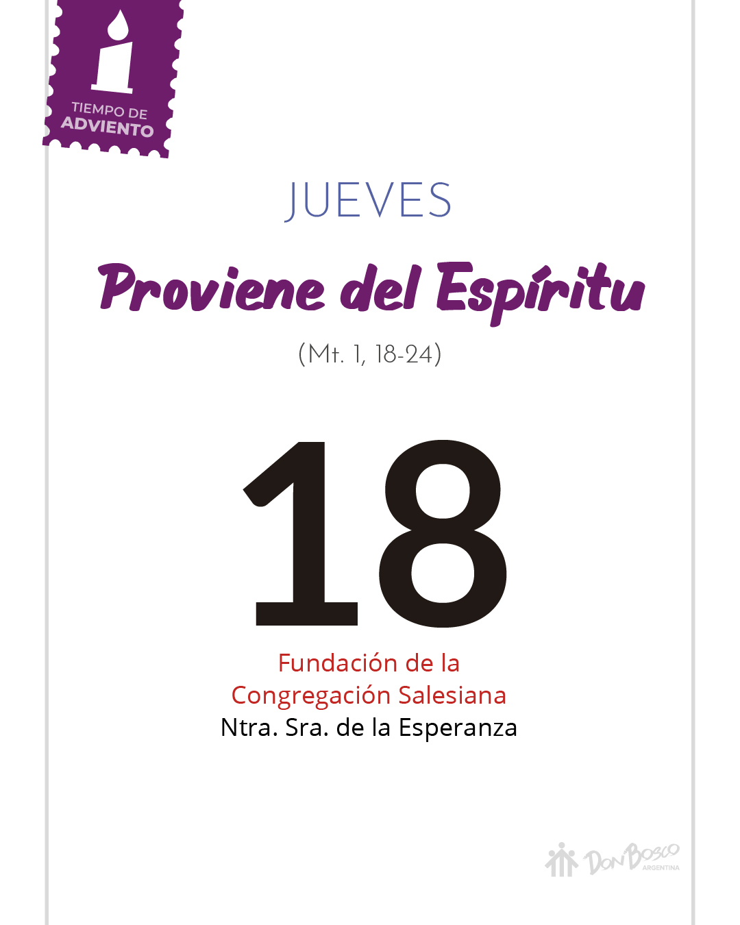 Con una brevedad telegráfica, Mateo nos cuenta en estos versículos lo que ocurrió desde la concepción al nacimiento de Jesús. Llama la atención que lo que resalta de este período, a diferencia de Lucas, es la difícil situación en que se encontró José. Si nos ponemos en su lugar, ¡no era para menos! Mientras María sufría en silencio, José se debatía en medio de tremendas dudas. ¡Y pensar que él pudo haber denunciado a María por adúltera! ¡Y pensar que ella no tenía manera de probar lo sucedido! Todo forma parte del misterio que se hace historia humana, historia de Amor. Los actores de cualquier obra teatral o de cine estudian concienzudamente sus diversos papeles, los ensayan una y otra vez, los ejecutan en privado y en público, hasta que los dominan totalmente. La improvisación en este ámbito es preludio de fracaso. No es así cuando Dios decide servirse de los hombres y por amor los elige. María y José son capaces de seguir las inspiraciones y la voluntad de Dios, aunque nadie les ha pasado de antemano sus "tareas". Dios irrumpe en sus vidas y las "trastorna". No obliga, seduce. Suscita el amor del hombre y entonces lo lleva por donde no hubiera soñado jamás... Cuando alguien se deja guiar por Dios, debe improvisar, y a pesar de la oscuridad de la fe, al final siempre brilla la luz. La actitud correcta es entonces el abandono en su voluntad. María y José escriben una historia de amor única e irrepetible porque ambos se fían de Dios. A nosotros nos invitan a confiar más en su gracia que en nuestras cualidades, más en sus planes que en los propios. No hay mejor intérprete que aquel que deja que Dios haga la parte que en su vida tiene asignada. Cuando nos empeñamos en caminar dejando de lado su voz y preferimos no saber lo que Él quiere, sin darnos cuenta nos quedamos sin el "apuntador", sin aquel que sabe en cada momento lo que mejor nos conviene y desea dárnoslo a conocer.