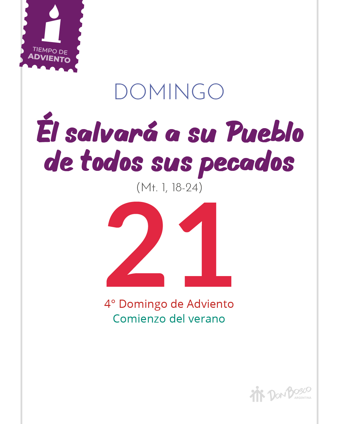 "No temas José": el apostar por Jesús no es fácil, se vienen a la mente incertidumbres, dudas, crisis. En este texto Dios nos hace ver a un José dubitativo frente a la realidad, pero a través de él nos muestra que se pueden vencer todos los obstáculos, por que a quien ama de verdad, Dios nunca lo abandona. "Emanuel, Dios con nosotros": En Jesús, Dios se hace hombre por amor a toda la humanidad. Frente a las dudas de la vida, quien ama puede encontrar a Jesús, en las personas que lo rodean, viendo su rostro en el servicio amable y desinteresado de quien hace las cosas por amor. "Al despertar hizo lo que el ángel le había ordenado": vemos ahora a un José enamorado. A pesar de haber recibido el mensaje, tranquilamente lo podría haber esquivado, pero el amor que tiene hacia María es tan grande que no la puede abandonar, es un amor que acepta la opción de vida de la otra persona, y no sólo la acepta, sino que también la acompaña. ¿Seremos capaces de aprender de José a amar y acompañar hasta las últimas consecuencias?