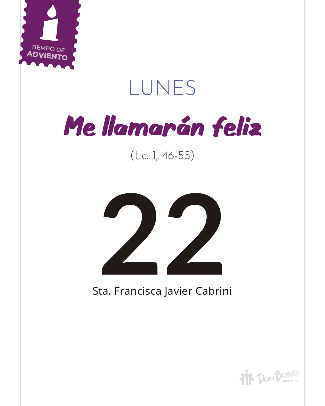 El canto de María es una esperanza de los últimos de la sociedad, que han puesto su confianza en el Dios de la vida y en la vida de Dios. Ven como sus proyectos no fueron en vano, ven como sus deseos no fueron frustrados, y ven, por encima de todas las cosas, que en medio de sus pesares Dios está de su lado. "En adelante todas las generaciones me llamaran feliz": Con María hemos recibido la herencia de la felicidad, sería bueno preguntarnos ¿Este regalo está vivo hoy en mí o depende con el pie con el que amanezca cada mañana? ¿Soy feliz o infeliz? Debemos estar seguros de que Dios lo único que quiere es nuestra felicidad en las cosas cotidianas, y no esperar grandes acontecimientos para decir que estuve feliz.