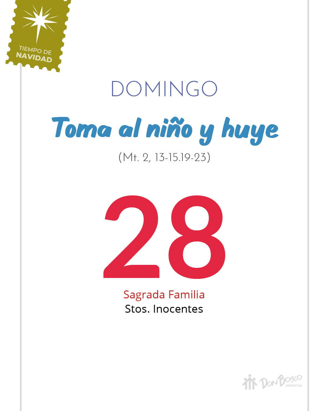 "Levántate, toma al niño y a su Madre y huye a Egipto": sería muy importante en este día ponernos en el lugar de José, él dormía, y en medio de sus "sueños", en todo lo que engloba esta palabra, Dios le pide que abandone sus sueños, y que deje su vida de lado, para ir a un lugar que él no conoce, donde nadie sabe qué será de su vida. José tenía muchas excusas para decirle a Dios "déjame soñar, déjame vivir", pero hace todo lo contrario, acepta lo que le toca, sin protestar. "Regresa a la Tierra de Israel": Había nuevos sueños en la vida de José, y Dios le dice "abandona todo y regresa"; muchos en el lugar de José hubiésemos dicho "primero me sacás de mi tierra y ahora que por fin logré estabilizarme me pedís que vuelva...", pero él, sin decir nada cumple con la voluntad de Dios, sabiendo que podrá volver a soñar como antes; de aquí seguramente Jesús aprendió a cumplir con la voluntad de su padre sin renegar. En este día deberíamos tomar el ejemplo de José, a pesar de que a veces los sueños hay que dejarlos de lado, nunca hay que olvidarlos, porque en cualquier momento, Dios nos puede pedir que volvamos a soñar, no importa donde estemos ni con quien, pero los sueños en algún momento se cumplen.