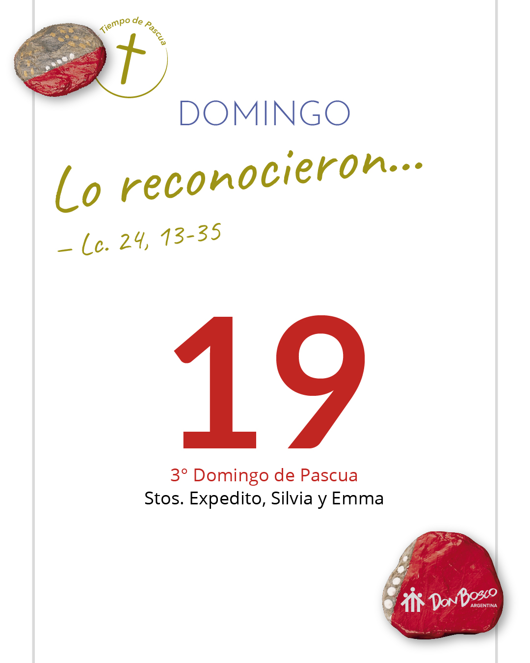 “Iban a un pequeño pueblo”. Ante el fracaso de toda expectativa, ante la contundencia de la muerte, ante la pérdida de los sueños... lo más razonable parece volver a lo concreto, a la vida de antes, a las seguridades pequeñas pero palpables. Comparo esta reacción de los dos caminantes con mi actitud frente a los golpes y desencantos de la vida. Mirando todo el camino-proceso que recorren los discípulos, trato de ubicarme en aquel tramo donde hoy me descubro andando. “El mismo Jesús se acercó”. Me detengo en las actitudes de Jesús. ¿Qué hace Él ante la incertidumbre, la desesperación, la sensación de fracaso de los suyos? ¿Qué pasos va dando? Contemplo el proceso que Él acompaña. “Y estando a la mesa”. “Quizás la escena de Emaús sea una de las que más calma transmite en los evangelios: Jesús no tiene apuro por darse a conocer, gasta tiempo en conversar, les hace preguntas de esas que, más que contestación, buscan entrar en contacto... les explica las Escrituras y se sienta a cenar con ellos aunque, menudo fallo, no tuvieron tiempo para la sobremesa” (D. Aleixandre). Comparo mis tiempos y los de Jesús, me pregunto cómo respeto el camino y los procesos de los demás, cómo conjugo la paciencia del que ama con la urgencia de evangelizar. “Entonces los ojos de los discípulos se abrieron”. Al final, la fe que es reconocimiento, trae consigo “conversión”: el encuentro con Jesús los hizo regresar al lugar de donde venían. Pero, primero, Jesús se acercó y caminó con ellos en su misma dirección, en su mismo sentido. Se juntó con ellos allí donde estaban. Y ellos, que no habían comprendido las palabras, recuperaron la memoria ante el memorial y el gesto. “¿No ardía acaso nuestro corazón, mientras nos hablaba en el camino y nos explicaba las Escrituras?”. Me quedo un momento ante esta pregunta. Repaso invitaciones que se están acallando, ardores que se han detenido, búsquedas que ya no me interesan… ¿Cómo reencontrarme con esa pasión apostólica que un día me puso en camino? ¿Cómo desandar los senderos del desánimo, la rutina y el aburguesamiento? ¿Cuál es aquella palabra-presencia que en este momento puede reencender el fuego de mi corazón, de nuestro corazón? “Contaron lo que les había pasado en el camino”. En el camino, siento que Jesús me acompaña y me interpela en la vida de los jóvenes. No me pongo yo en el lugar de Jesús... los pongo a ellos, que me evangelizan. Y reconozco gestos, palabras, silencios, presencias de los jóvenes que hacen reencender en mí el fuego de la pasión por el evangelio.