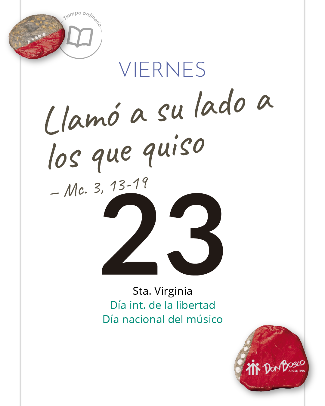 Ayudanos, Señor, a que podamos reconocer tu llamada, esa que nos hacés desde lo que somos, vos que nos conocés a fondo. Que sepamos responder con generosidad. Que confiemos en que vos nos darás la fuerza para hacer y anunciar el bien.