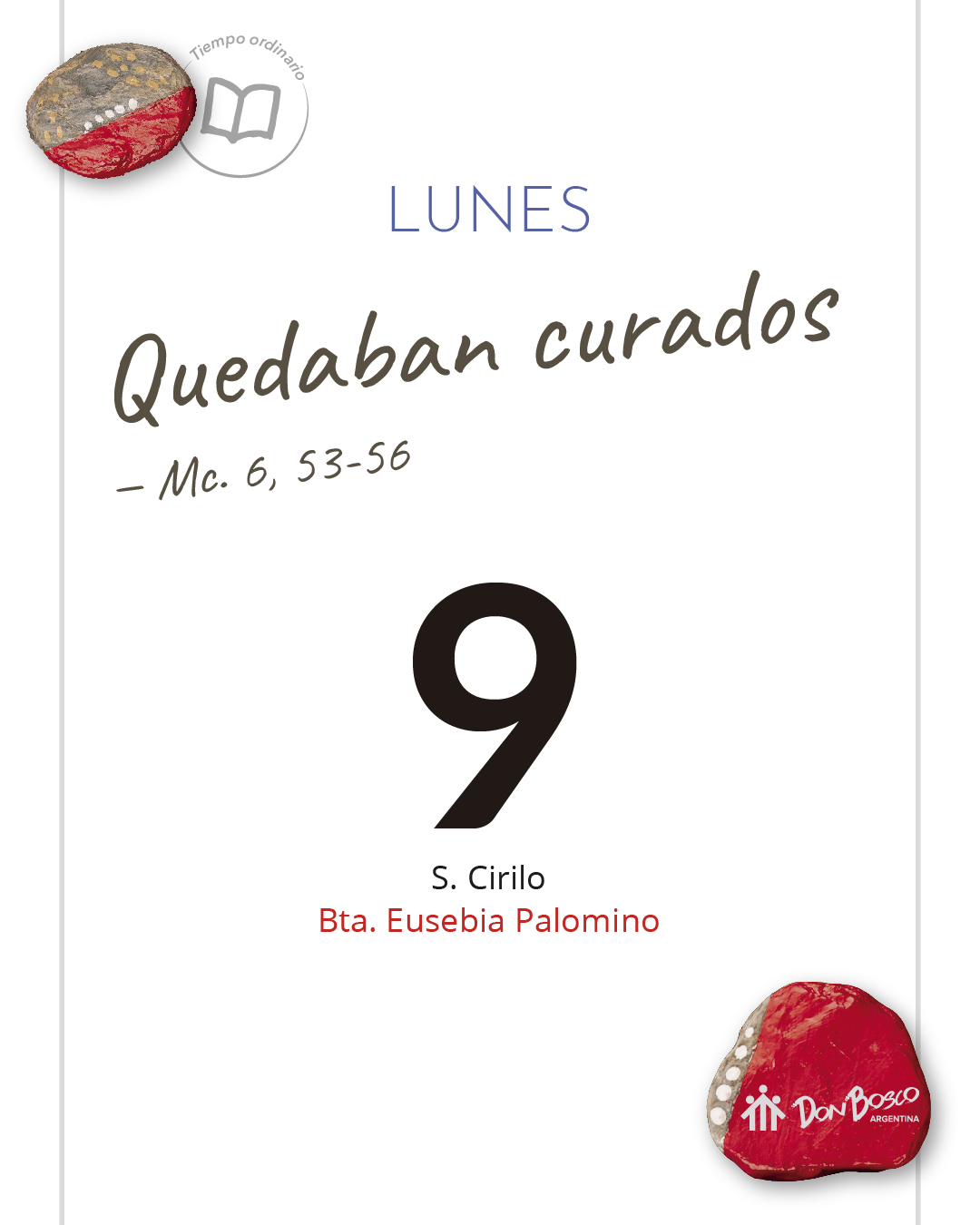 “Llegaron… Desembarcaron...”. Las imágenes de viaje me dan la clave de mi vida y de este día: soy un discípulo misionero. Si me instalo, pierdo al Maestro. Porque El sí que viaja de acá para allá todo el tiempo. “En todas partes… ponían a los enfermos”. No estoy para los sanos; no quiero instalarme entre “los que andan bien” e ir perdiendo el impulso de preferir a los más necesitados. ¿Qué tipo de vida y trabajo busco? ¿Rodeado por qué tipo de gente? ¿Los “sin problemas”? “Le rogaban que los dejara tocar”. Una vez más: Sin tacto, sin contacto, no hay salvación. Dinámicas de encarnación llevan no a mirar desde lejos, sino a tocar, a palpar la realidad, a sopesarla, a cargarla, a dejarse alcanzar, a hacerse accesible. Reviso mis inaccesibilidades y distancias; discierno si son para un correcto preservarme o si encubren una frialdad desencarnada… o un pretender que las cosas y las situaciones cambien por decreto, sólo hablando o discurseando acerca de ellas. Sólo hablar, no salva. Hay que ir y contactar. “Los que lo tocaban quedaban curados”. Recuerdo experiencias en que tocar “ha curado”: encuentros con gente muy santa, con comunidades muy testimoniales. Miro mi casa y nuestras propuestas. Tocarnos, contactarnos, ¿cura? ¿A quiénes? Agradezco, y reviso.