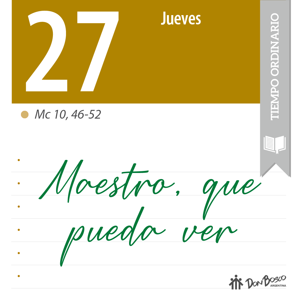 Con este pasaje concluye una sección en la que Jesús se ha dedicado a "instruir a sus discípulos" (Mc 9,31) sobre lo que implica seguirle por el camino hacia la cruz. A lo largo de toda esta instrucción ha aparecido una y otra vez la incomprensión de los discípulos, que ni entienden ni quieren aceptar lo que Jesús les pide. El primero en no aceptar este camino fue Pedro, que se atrevió incluso a enfrentarse a Jesús, pidiéndole que abandonara este camino. Jesús lo reprendió duramente en presencia de los demás discípulos y le mandó que se pusiera "detrás de él", es decir, que asumiera el lugar que corresponde al discípulo. A pesar de todo, los demás discípulos seguían sin comprender y se pusieron a discutir sobre quién de ellos sería el más importante (Mc 9,33-34), o a pedirle a Jesús los puestos de honor (Mc 10,35-37). Las reacciones de los discípulos a lo largo de toda esta sección muestran que son incapaces de comprender, que no ven el sentido de lo que Jesús les pide, y por eso son incapaces de seguirle. A través del ciego Bartimeo, el evangelista aproxima dos símbolos del seguimiento: el camino y la ceguera. También el evangelista Marcos dice a los cristianos de su comunidad una cosa muy importante: que lo que es imposible para los hombres es posible para Dios (Mc 10,27). A ellos les parecía que renunciar a sí mismos, perder la vida, ponerse en el último lugar, hacerse servidores y esclavos de todos... era sencillamente imposible. Por eso hacían como si no hubieran oído lo que Jesús les decía y seguían buscando el poder y la gloria (ocupar los primeros puestos). No sabían que para comprender (ver) aquellas exigencias de Jesús y seguirle como discípulos era necesaria la oración. No sabían que ser discípulos no es el fruto de una conquista, sino un don, algo que sólo se puede obtener de Dios con una súplica confiada. Esto es lo encontramos en el relato al final de esta sección. |