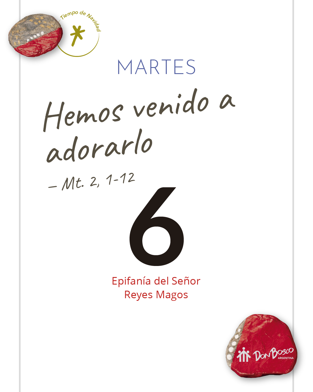 "Cuando nació Jesús". un nacimiento, un momento tan único e irrepetible. Tan importante es este nacimiento que el cielo lo acompaña con signos que no todos descubren, ni saben leer. ¿Estoy atento a los signos del nacimiento de Jesús cada día en mi vida? Unos magos de oriente, seguramente astrólogos de esa época, que pueden interpretar y seguir a esa estrella que los lleva al rey de los judíos. Sin pertenecer a ese pueblo, entendían que ese niño, no era cualquier niño y a pesar de las distancias y las incertidumbres del viaje, deciden buscarlo para adorarlo. Este nacimiento no era para unos pocos, justamente desde este momento nos demuestra que nació para todos. ¿Reconozco a Jesús como mi salvador, mi rey? ¿Entiendo que vino para todos? ¿Estoy dispuesto a buscarlo y adorarlo? "¿Dónde está el rey de los judíos que acaba de nacer?". Preguntan donde deberían saber que su rey ha nacido, en Jerusalén, pero los judíos no habían reparado en este nacimiento. Más aún, les pide Herodes que le avisen donde está para ir él también. ¿Cuántas veces en lugar de dar testimonio de su presencia necesito que me digan dónde está? "La estrella... se detuvo en el lugar donde estaba el niño". Con la estrella como única guía siguen su camino hasta llegar al lugar donde lo encontraron con su madre. Entonces llenos de alegría lo reconocieron y lo adoraron, le rindieron homenaje. ¿Me llena de alegría reconocerlo? ¿Es la alegría un signo de Jesús en mi vida? En sueños la advertencia, y un nuevo signo los lleva lejos de Herodes y de vuelta a casa. ¿Estoy atento a las señales que me traen de nuevo junto a Jesús, a casa?